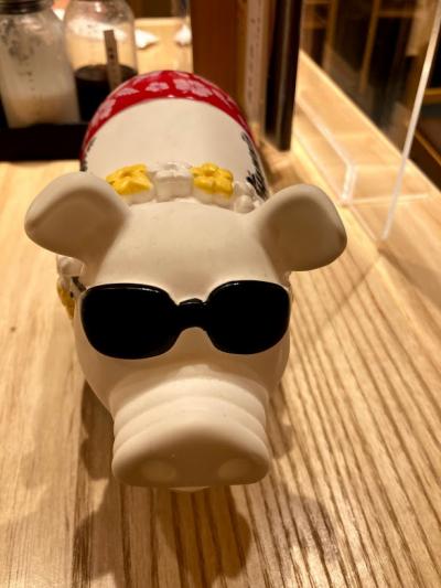 ランチは「とんかつ和豚」初めの写真は、テーブルにいた豚です。