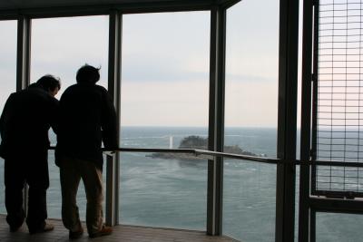 曇りがちの空。展望室付近は望遠鏡があるのですが、この日はあいにく良い眺...