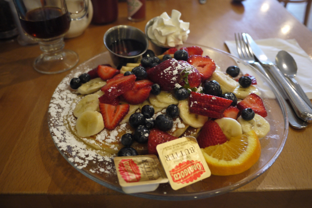 ボリューム満点のパンケーキです。フルーツを選べます。店員さんはみんな フレンドリーで、明るいお店です。シロップとクリームは自分の好きなように食べれるように、添えてあるので、甘すぎず、たくさん食べれます。東京にも支店ができたようです。オムレツも美味しいし コーヒーも美味しかったです。ただあまり大きなお店ではないので、早めに行くほうがいいと思います。