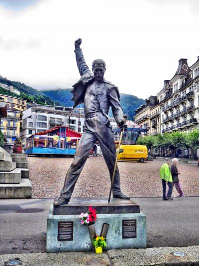 ホームから見えるGrand Hotel Suisse Majestic方向の出口に進み、駅前のアルプ通り(Av. des Alpes)を左折、上述のホテルを過ぎた先の小道を右折するとすぐにレマン湖畔に出ますので、湖畔沿いに左(南)方向へ。まもなく銅像が見えてきます。駅を出て徒歩10分弱で到着。銅像を見ていると、彼がモントルーを愛し、町の住民が彼を愛していたことがわかるような気がします。- 旅行時期