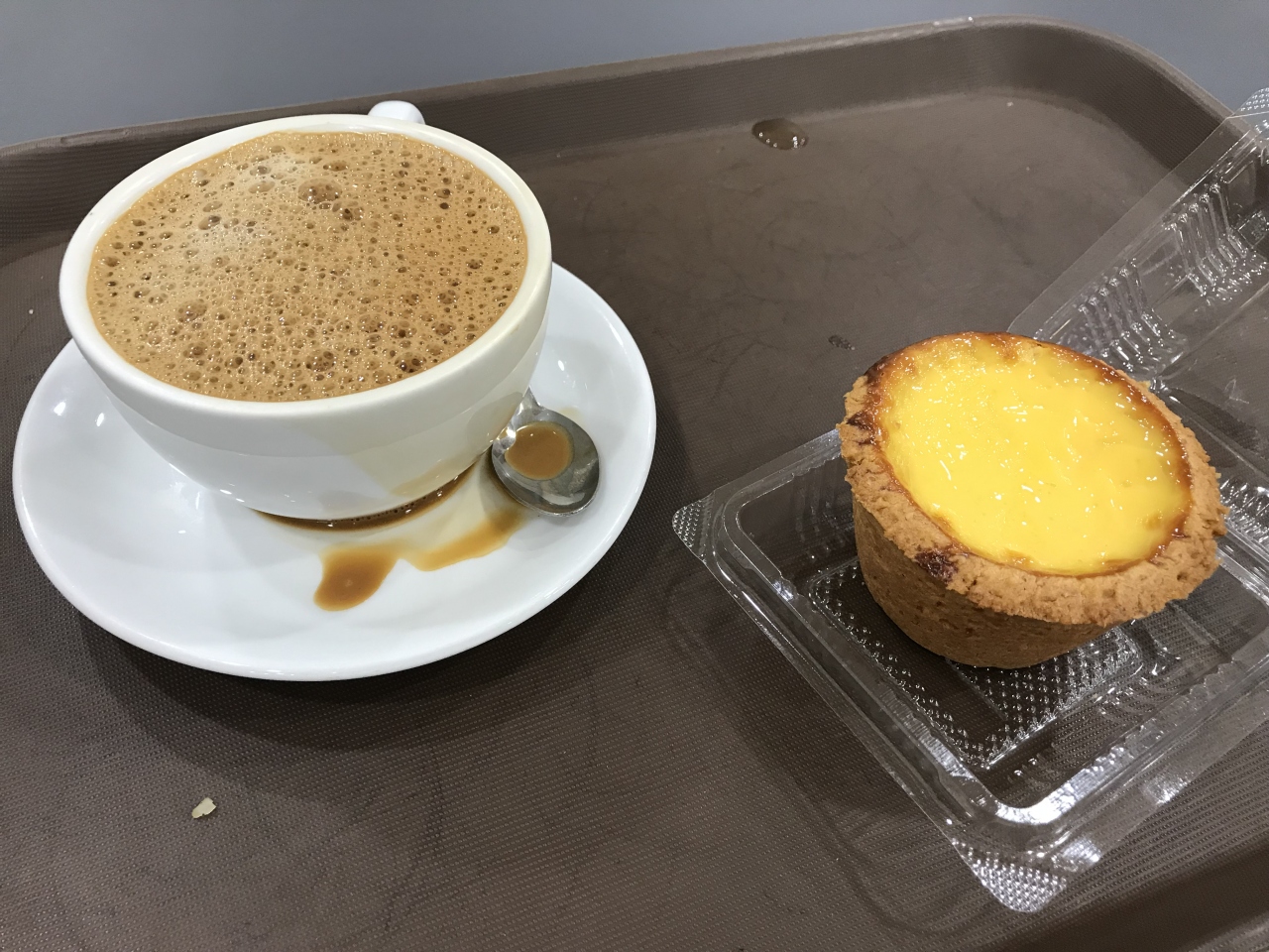 1F奥にあったベーカリーでエッグタルトを発見したのでコーヒーと一緒にイートインしました。3個買ったら安いよってsuggestionされましたが、3個も食べられません。。。