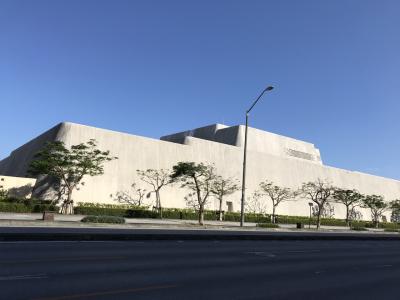 おもろまち駅の駅前にあるTギャラリアの横を抜けて、メインプレースを突き抜けると、そこには巨大な横に広い遺跡みたいな建物があります。そして、角には何とじんべい?