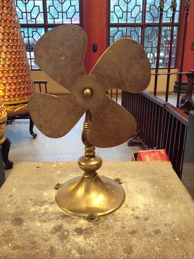銅製の金色の風車が置いてある寺院です。右に3回回すと運気が上がるとか。