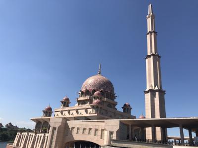 プトラジャヤの駅から出ている観光バスを利用してピンクモスクに行きました。行ったのは15時の回。料金はバスの中で徴収されました。ピンクモスクにはツアーの2番目に寄りました。観光時間は40分あったので、ピンクモスクの中にも入りました。建物の中まで綺麗なピンク色で統一されていて綺麗で見ていてうっとり。遠くから見るピンクモスクも綺麗ですがやはり近くで見るともっと綺麗だと思いました。幸いにも天気に恵まれて、青空の下に佇むピンクモスクの写真を撮ることができ大満足です。