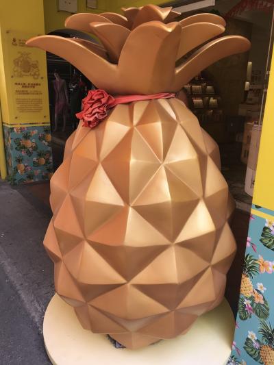 チャイナタウンフードストリートの入口にでっかいパイナップルが飾ってあるお店があります。お土産にうってつけのお菓子を売ってるお店。パイナップルケーキなどがありました。試食も出来ます。パイナップルケーキは箱売りの他、単品売りもしていました。
