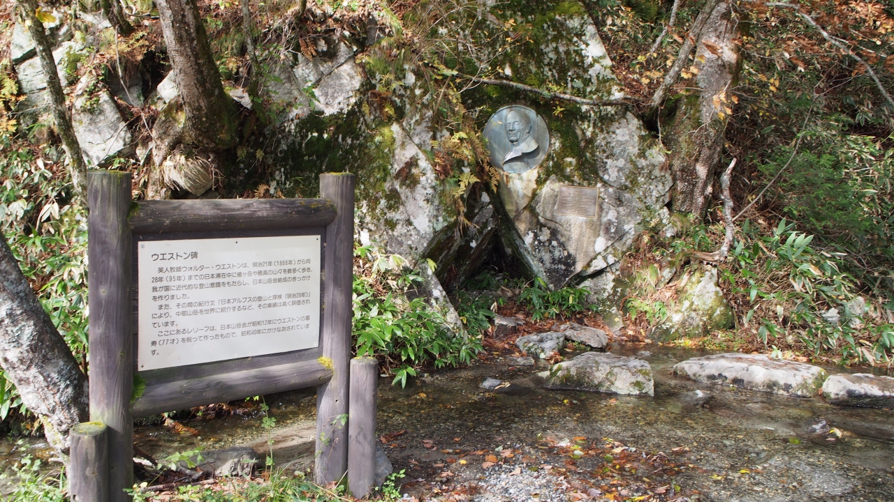 ちょっと、コメントに弱る碑である。上高地を世界に紹介した人であるのにもう少し扱いが良くても良いのではないだろうか。もっと上高地の1等地に碑があっても不思議でない。上高地はどこに行ってもきれいでまた、訪れたい場所です。
