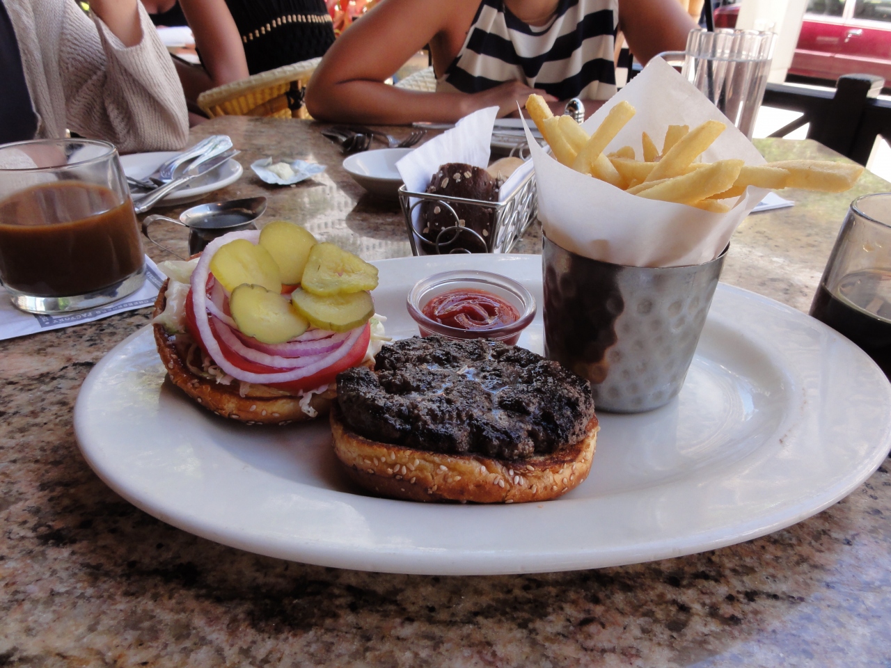皆さんの口コミを見ていると、結構混んでるみたいですが、ランチに行きましたが余り混雑してませんでした。カラカウア通り沿いにあり、なかなか雰囲気の良いレストランです。私はハンバーガーを食べましたが、大変美味しかったです。お腹いっぱいの上に勿論チーズケーキも食べました。チョット大きなケーキです。