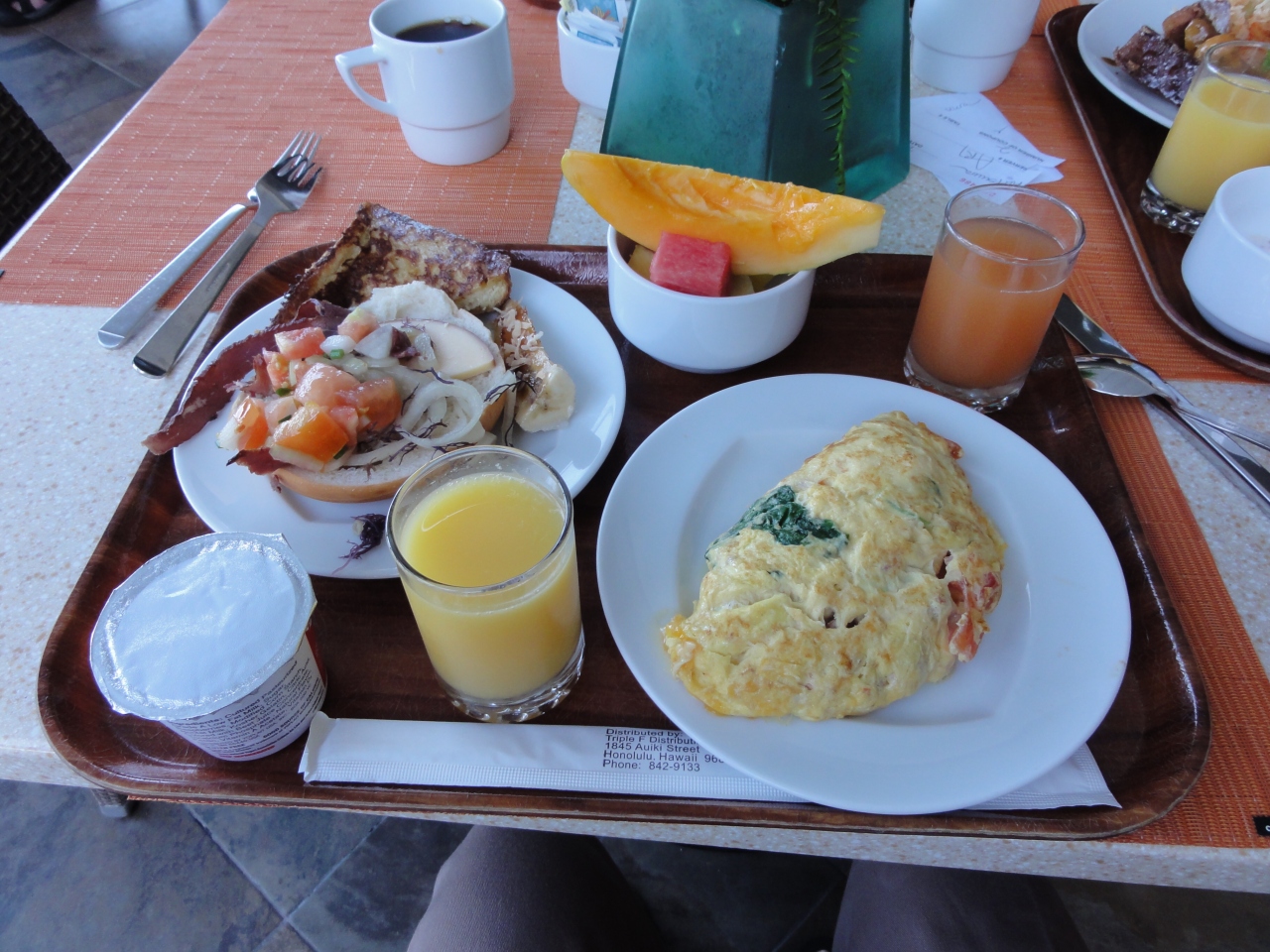 朝食時に利用しました。結構空いていて雰囲気の良いレストランです。スタッフのサービスも良く、感じが良かった。料理も美味しく、特に、これはハワイではどこでも言えることですが、パイナップルが非常に美味い。日本とは違いますね。スタッフの女の子が気さくな感じで良かったので、ついついチップをはずみました。