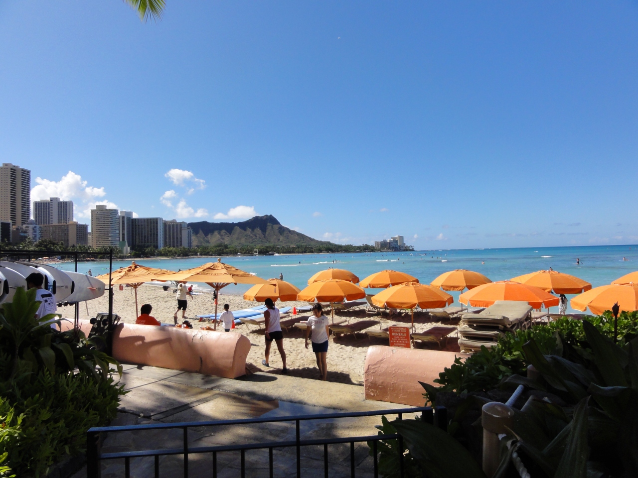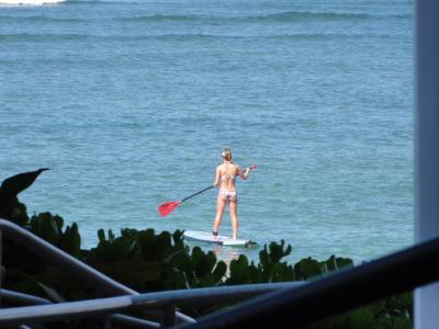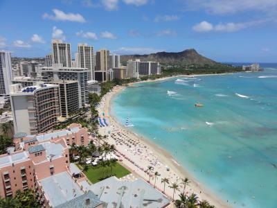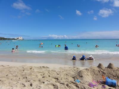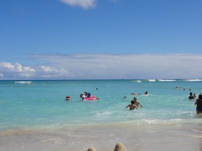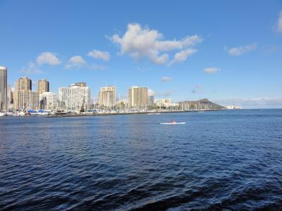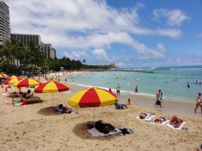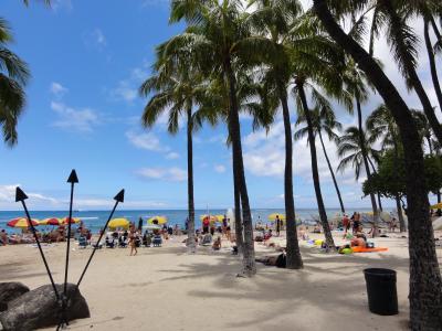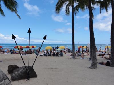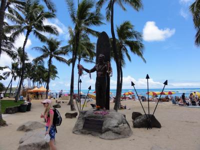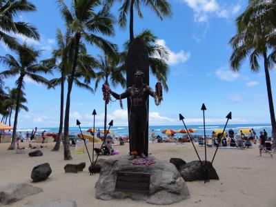 ワイキキを散歩していたら自然とデュークカハナモク像に着きました。皆さん並んで記念撮影してました。ハワイでは有名な人ですね。腕にレイをかけて堂々としています。この像を見るとハワイに来たと実感します。天気も良く最高です。
