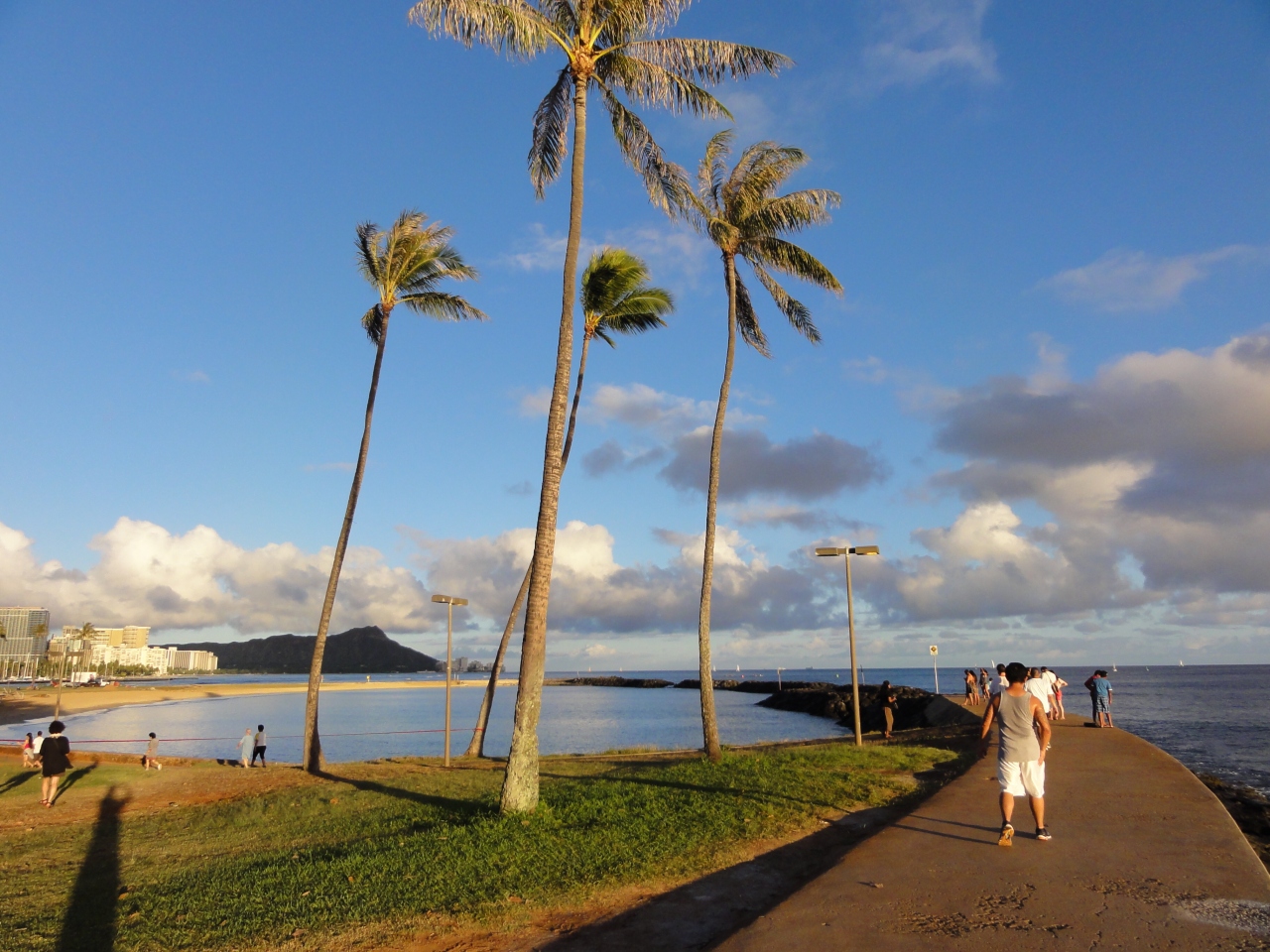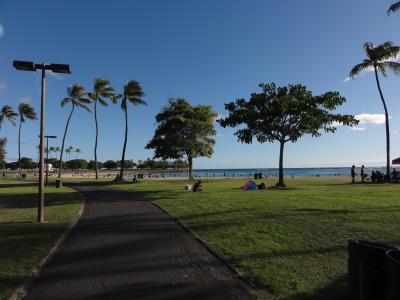 アラモアナショッピングセンターから歩いてすぐの所にあります。夕方にかけて行きましたが、地元の方々がベンチでゆったりしてたり、スポーツしてたり、ジョギングしてたり、と様々に時間を過ごしていました。海の方では、カヌーをしてたり楽しい時間を過ごしていました。夕日を見に行ったのですが、あいにく雲が多く綺麗な夕日は見えませんでした。残念。また、行きたい公園です。