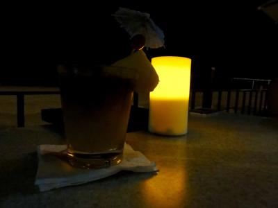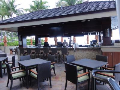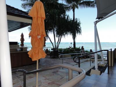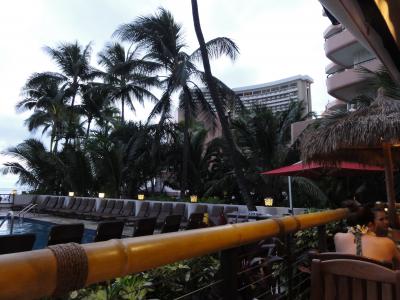 夕食後、午後8時過ぎに行きました。店の中は結構、人が混んでいて、ボーイさんに声をかけたら、「空いているところに座って!」とつれない返事。初めてだったのでシステムがよく分からず海側の一番いい席が空いていたので座りました。ほどなく、ボーイさんが来てマイタイなどのカクテルを注文。夕食時に結構飲んでたのですが、美味しかった。波の音が聴こえて、酔いもあって良い雰囲気です。ハワイらしさを感じるバーです。