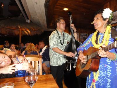 ハワイは何処に行っても日本人が多いのですが、行った日は満席だったのに日本人の比率は少なかった様に思いました。料理も美味しく、席まで歌を歌いに来てくます。写真を一緒に撮ったり、サービスは良かったですね。テラス席に座りワイキキビーチもすぐそばで、波音が