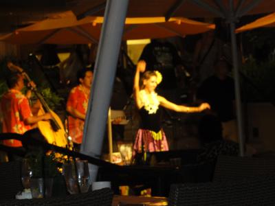 ハワイの雰囲気を満喫できる場所です。オープンエアの席に座ってビール、ワインを飲みながらショーを見物できる。ダイヤモンドヘッドも見えるし、もう最高です。海からの風が心地よく大変気持ち良い。こんな所でずっと居れたら良いなと思いました。
