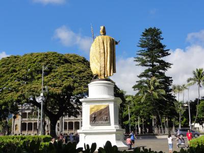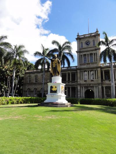 レンタカーでノースショアに行った帰りに寄りました。さすが、ハワイを統一しただけあって黄金色に輝いていました。道路沿いにコインパーキングがあって、1時間分のお金を入れて観光したのですが、時間が随分あまり、ちょうど他の観光客の方が車で来たので、「残った分の時間を使って下さい。」と言ったら、「日曜日はお金要りませんよ。」と言われました。ヒィエー 早く言ってよ!!お粗末でした。