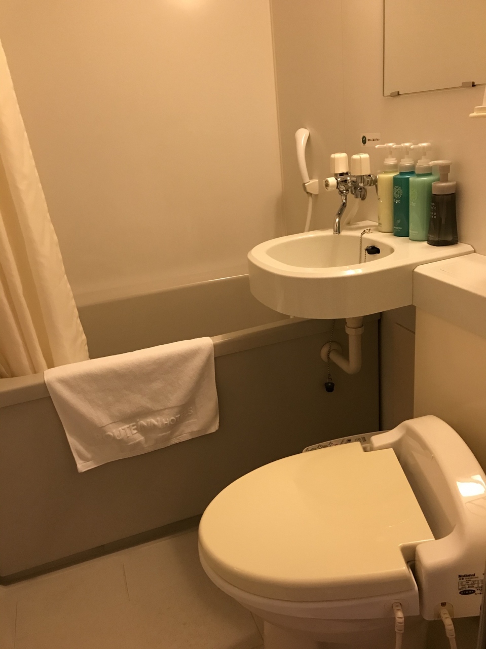 個室のバストイレの他、大浴場があります。近くに和食と焼肉の店が有るので、そちらで夕食を取ると良いです。
