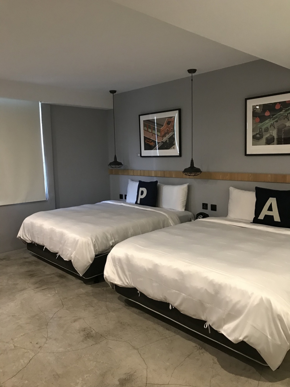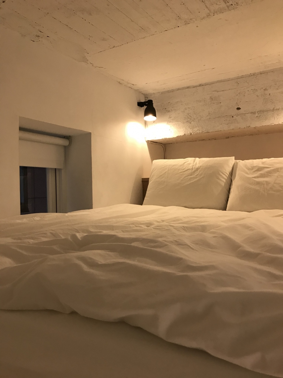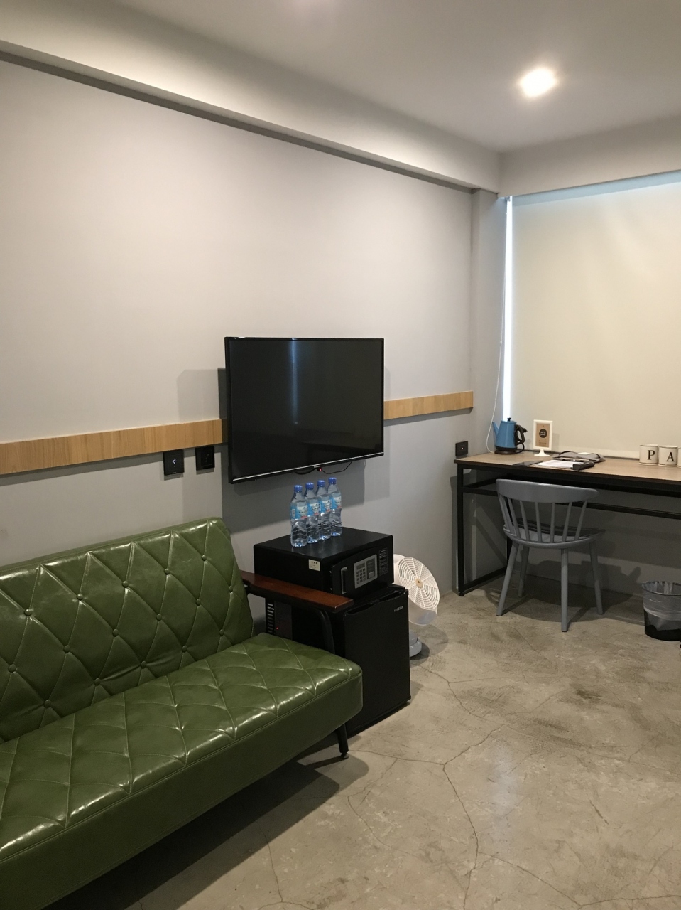 ホステルのダブルルームに泊まりました。シャワールーム付きで、一人3000円ぐらいで泊まれます。共同のシャワールームが有り、広い共有のキッキンダイニングが有ります。