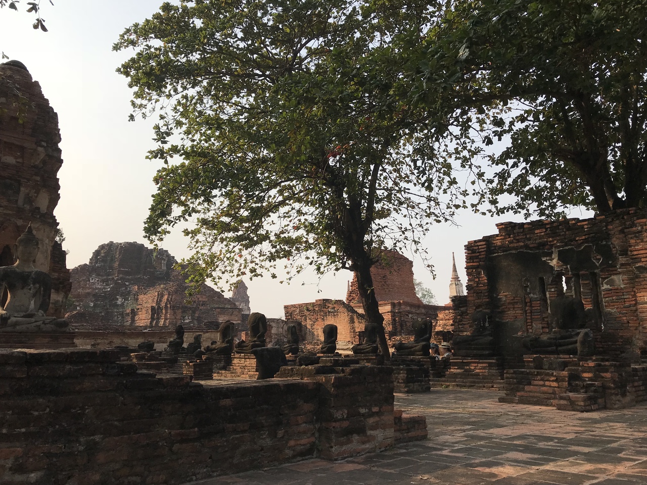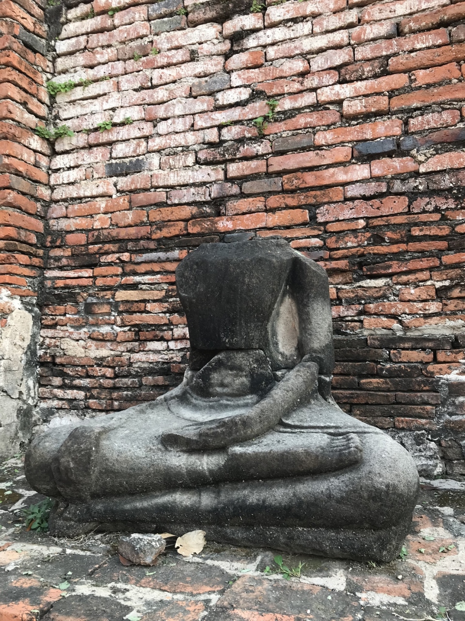 巨大な仏像や塔が廃墟の中にあります。バンコク市内の華やかな仏塔とは違う魅力がありました。