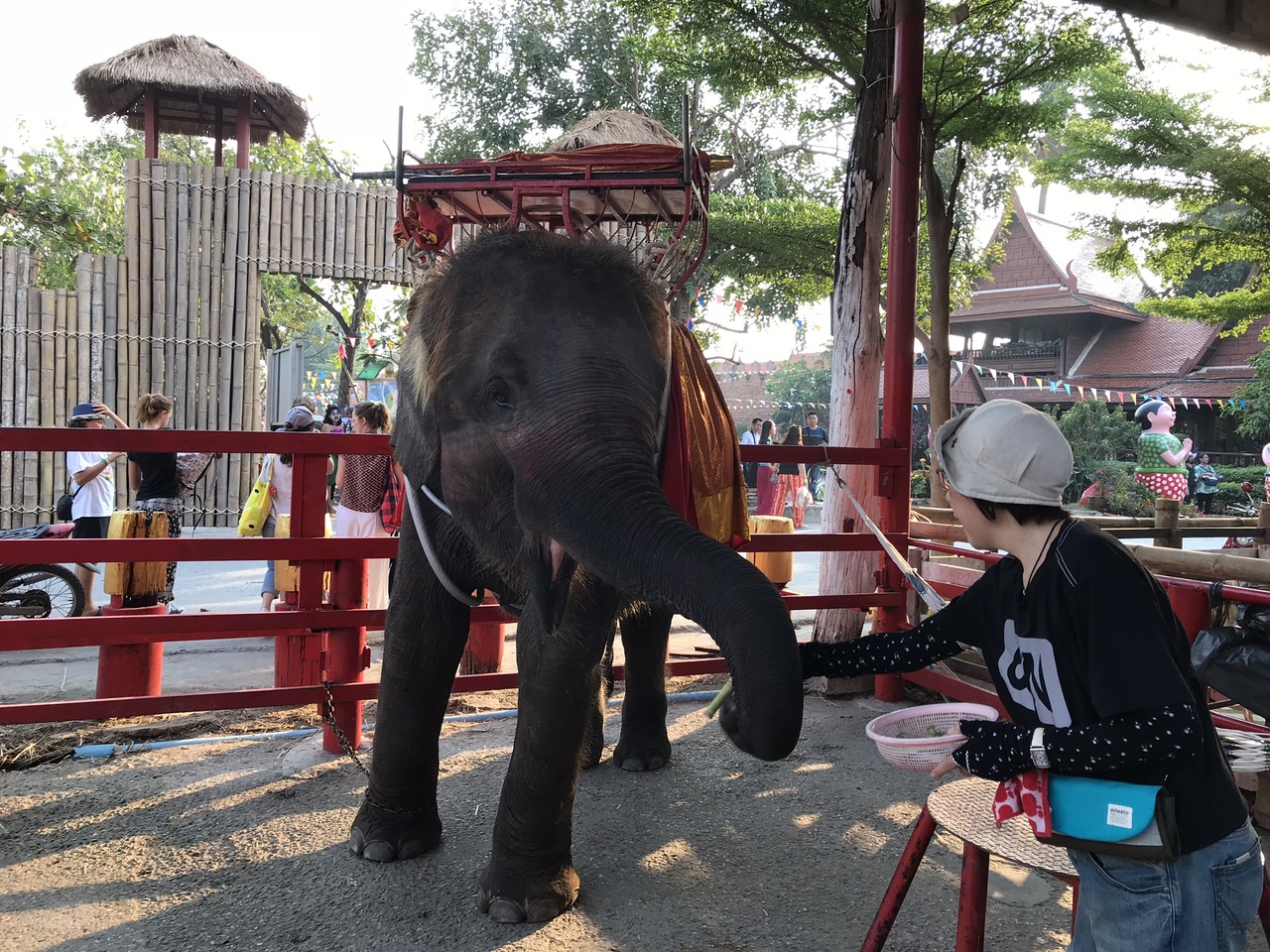 タイに行ったら象になりたーいと、いう夢が叶いました。象さんにエサやりしたり、哺乳瓶でコイにエサをあげるなど子どもも喜びそうなアトラクション、トラとの記念撮影などスリルのあるアトラクションがあって、こじんまりしてますがバンコクへの帰りに寄るのに丁度良い観光地でした。