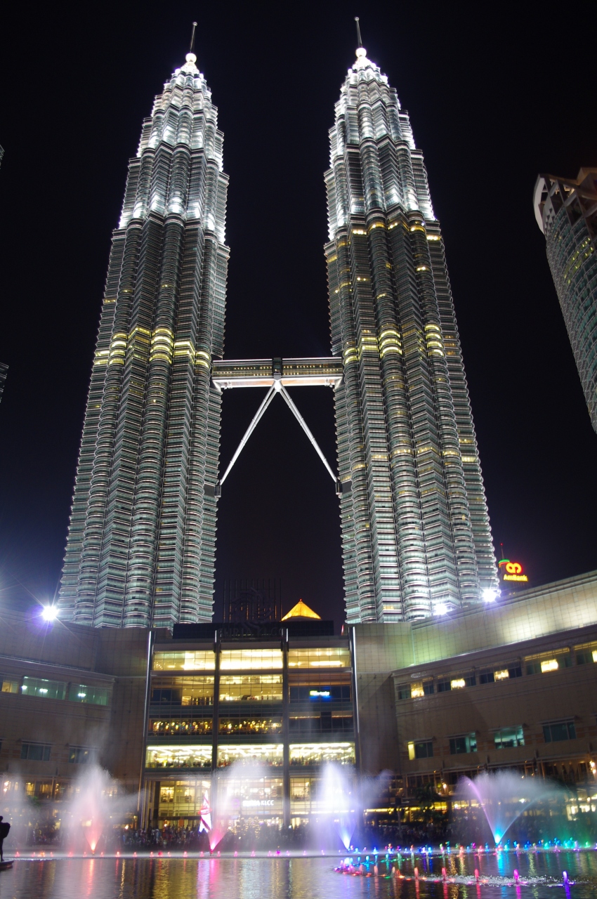 地面に這いつくばるようにすると、噴水&ツインタワーの写真が撮れました。