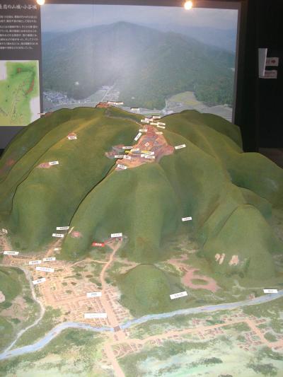 小谷山には、当時の石垣など城郭跡が残っています、上には小谷城ガイド「語り部」が