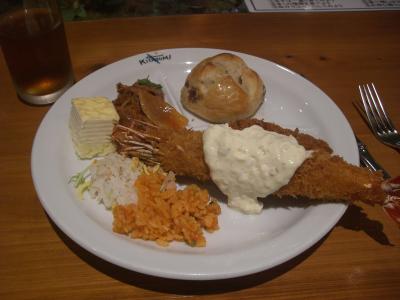 館内にレストランがあり、ブッフェで大エビのフライがいただけます(^O^)。