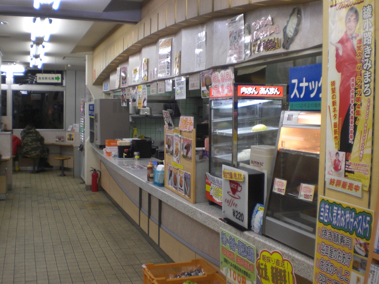 スナックコーナーは大きくて、食券で販売の食堂あり、