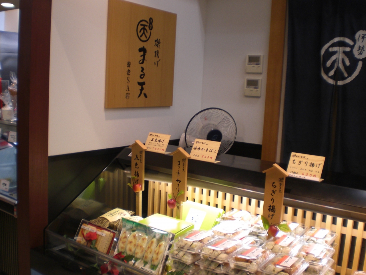 売店やお土産物屋、ファストフード風に、まる天、天むす、いか焼き