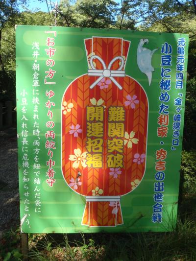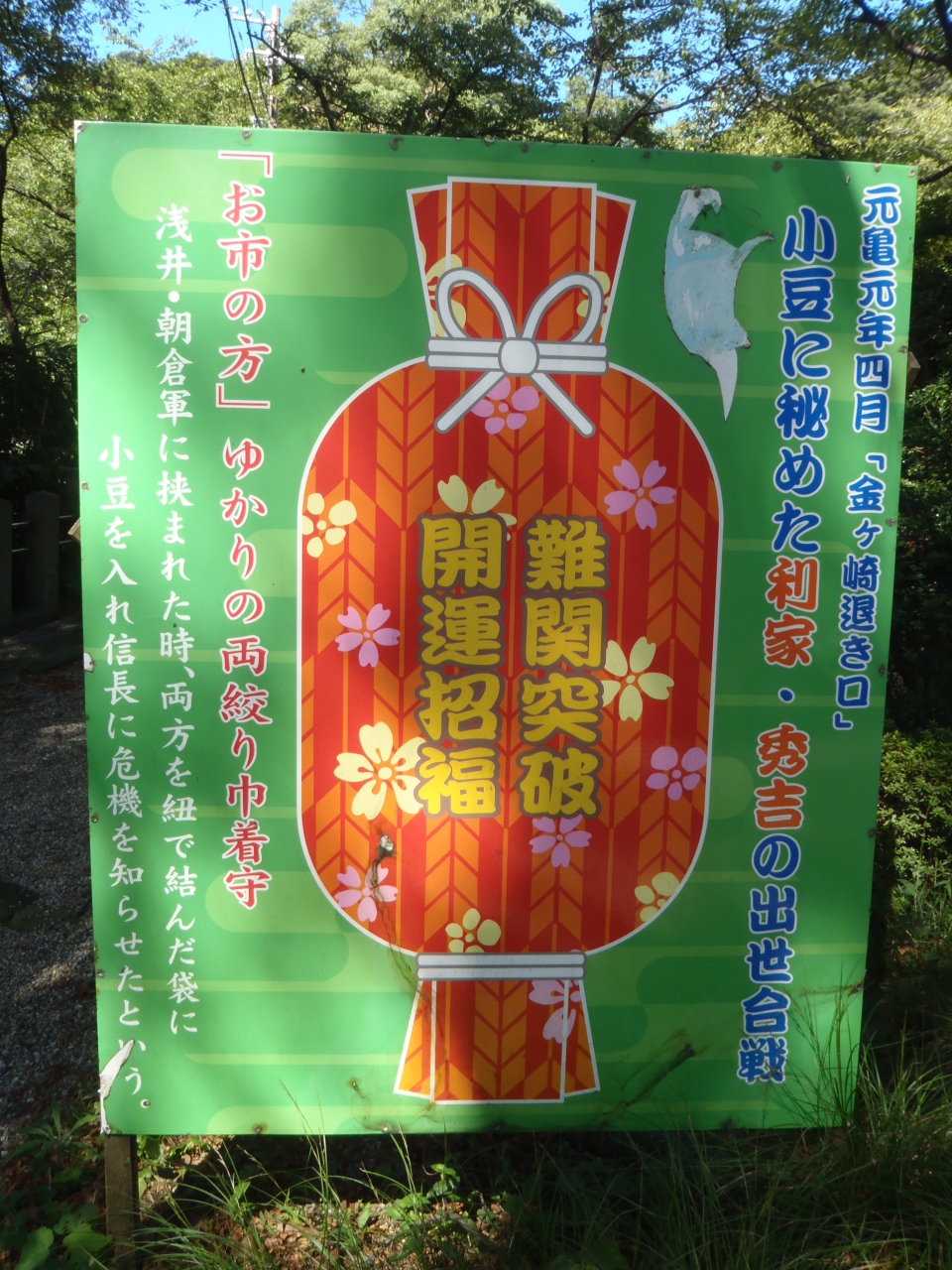 言い伝えでは、浅井、朝倉軍に挟まれた時、両方を紐で結んだ袋に