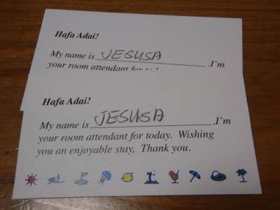 グアムホテルでのベッドメイキング時のチップ(お礼)、(*^_^*)。