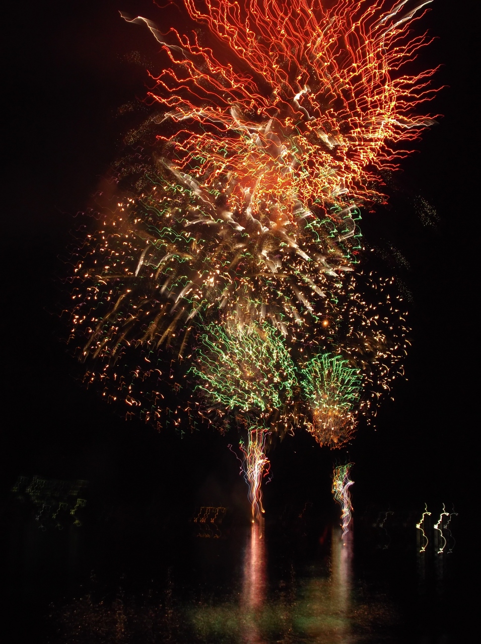 北陸地区最大規模の約13000発の打ち上げ花火と、敦賀湾には赤、黄、青3色の