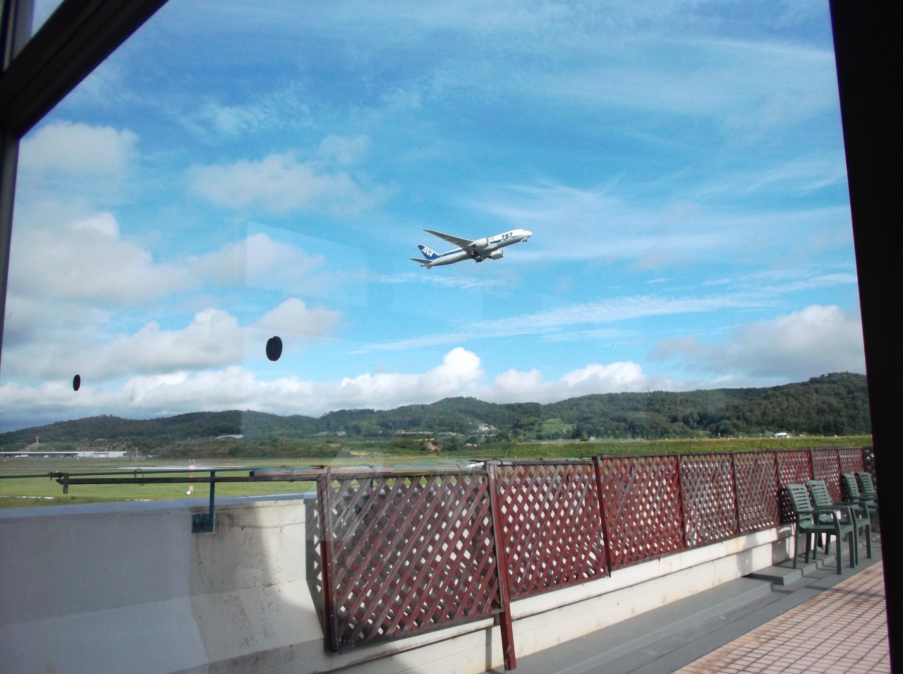 岡山空港から離着陸する飛行機を見ながら、食事することができます(*^_^*)