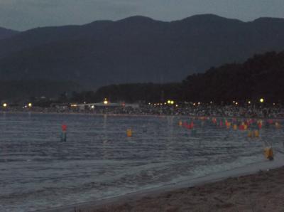 とうろうはm6:30~と7:00から、読経があり合図と同時に海に浮かびます。