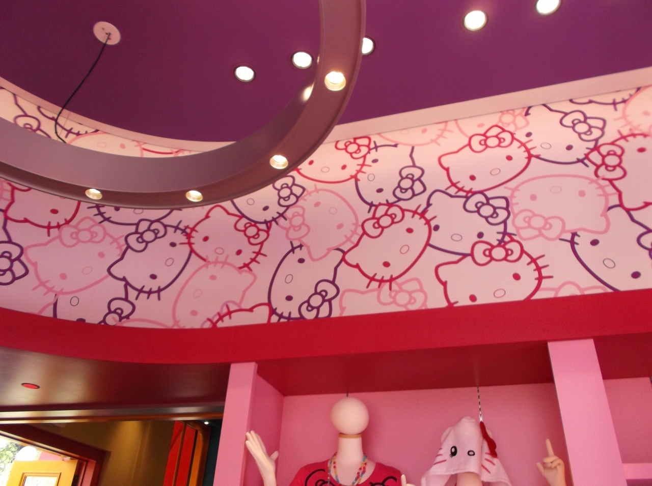 キティちゃんの世界をモチーフにした店内は、ピンク一色の世界で、