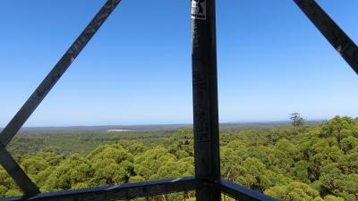 3つのカリーの巨木とは、ManjimupのDiamond Fire Tree(75m)、PembertonのDave Evans Bicentenial Tree(75m)そしてThe Gloucester Tree(61m)の総称です。西オーストラリア州でサザンフォレストと呼ばれるこの地域はジャラー、マリー、カリーの巨木の深い森。その中でもひときわ高い木に、火事を見つける監視台(Fire Tower)を作りました。