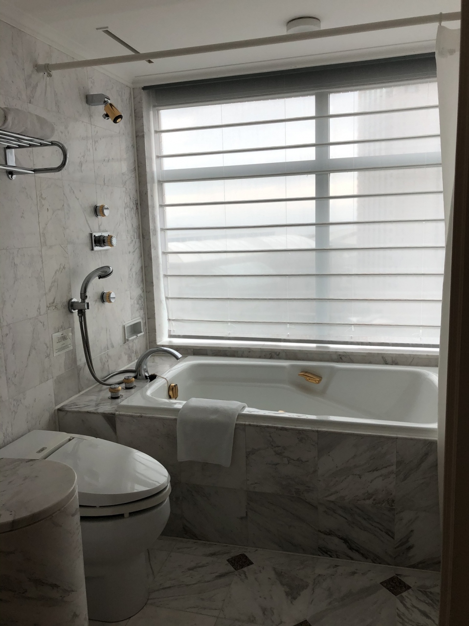 ツアーを申込む際、バス・トイレ別、部屋広めのこちらのホテルを選択し泊まってきました。最寄駅の本町駅はオフィス街でお店は少なめですが歩けば道頓堀にもいけるし立地はまずまず。開業から1年程で新しくスタイリッシュでした。宿泊用と外部用のエレベーターに乗り換えが必要でフロントは必ず通ります。部屋からの景色は独特ですが良かったです。