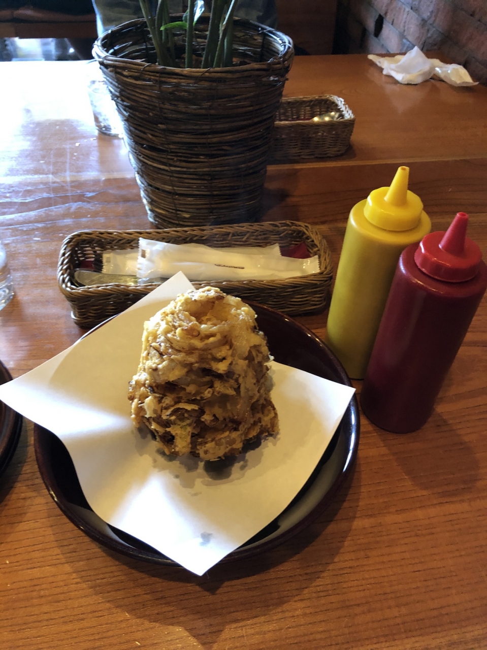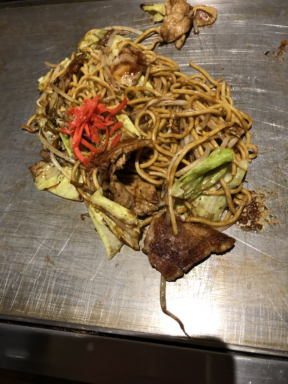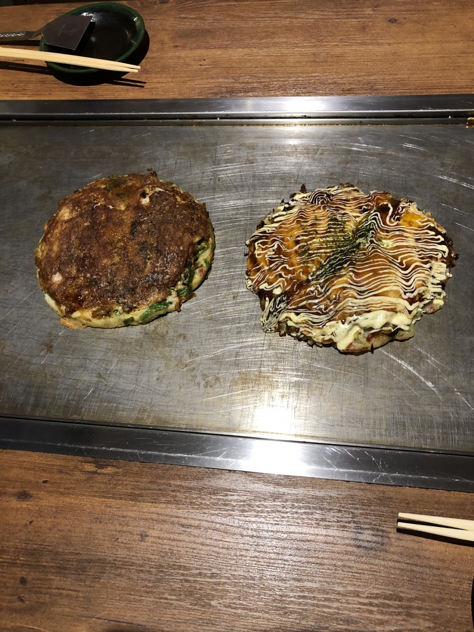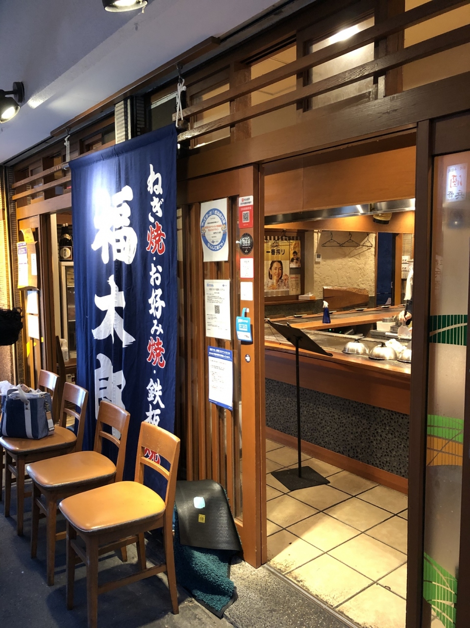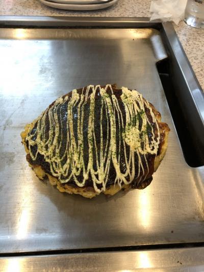 大阪旅行最後のご飯を食べる為に訪問。初めて梅田に行ったので新梅田食堂街がわからずうろうろ探してようやく発見。平日のお昼時で少し待ってからテーブル席に案内されました。椅子の中に荷物入れあり。ブタ玉とネギモダン注文。出来上がったものをテーブルに運んできてくれます。会計はカード使えず、現金支払いでした。