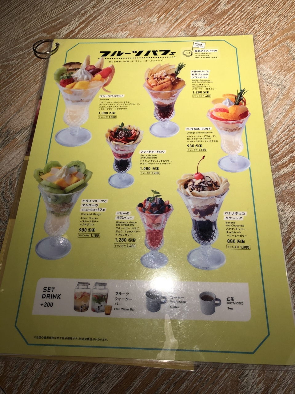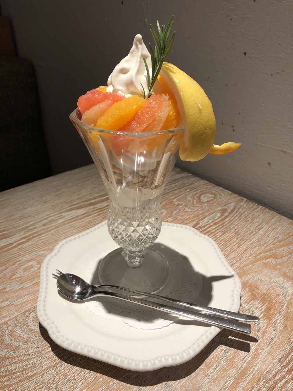 フルーツパフェが食べたくて土曜の11時過ぎに訪問。店内は開放的でかわいらしい雰囲気、マイナスポイントは段差がある席があること。SET DRINKをフルーツウォーターバーにした為、何度か往復したので気になりました。パフェはフルーツもコーヒーゼリーも良かったしまた行く機会あれば違うメニューも食べてみたいです。