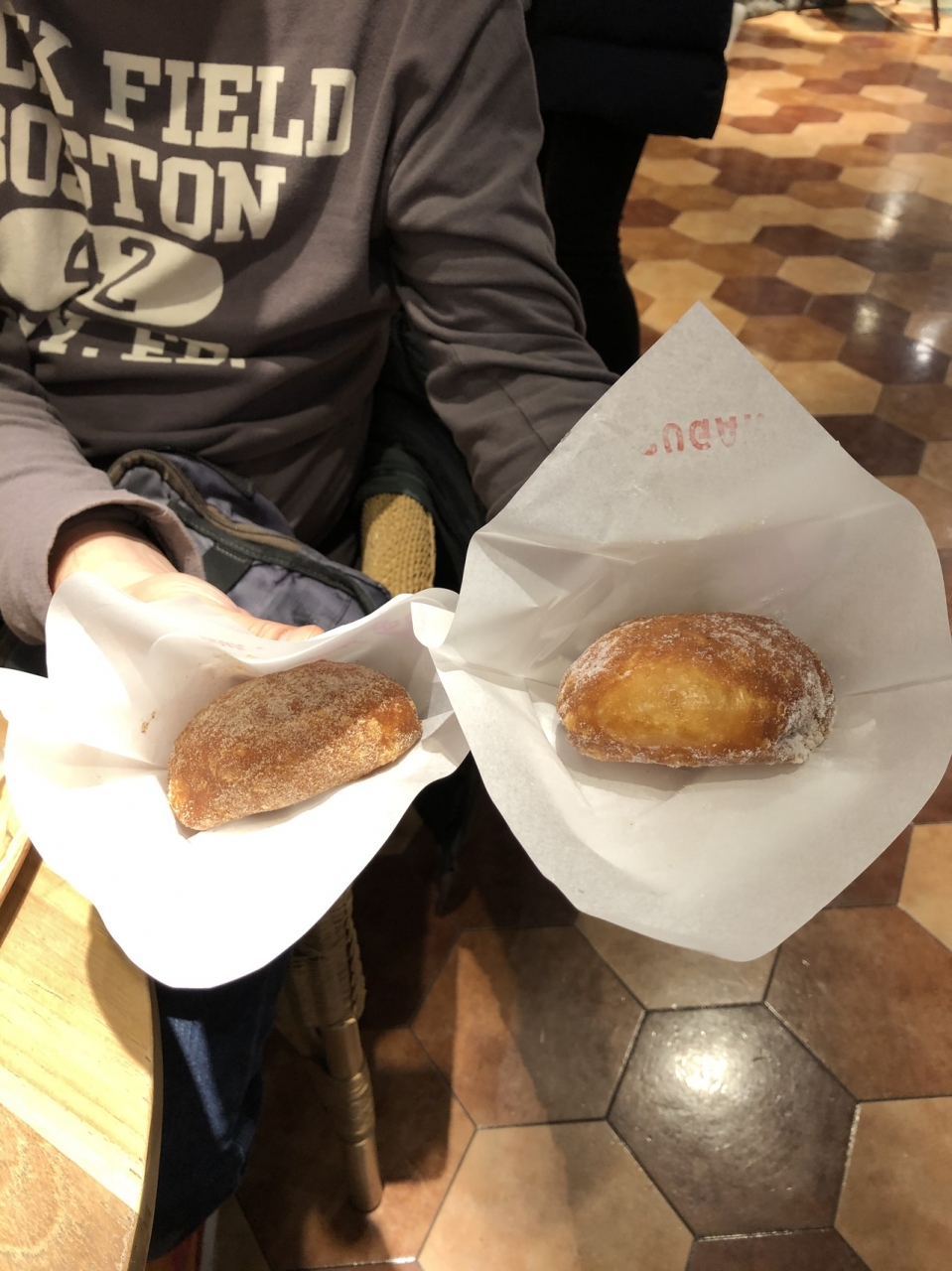 かなり前にハワイ島で食べたマラサダは作り置きで美味しくなかった為あまりいい印象がなかったけど、同じハワイアンタウンでガーリックシュリンプを食べた後に食べました。美味しかったです。普通のシュガーとシナモンを購入。
