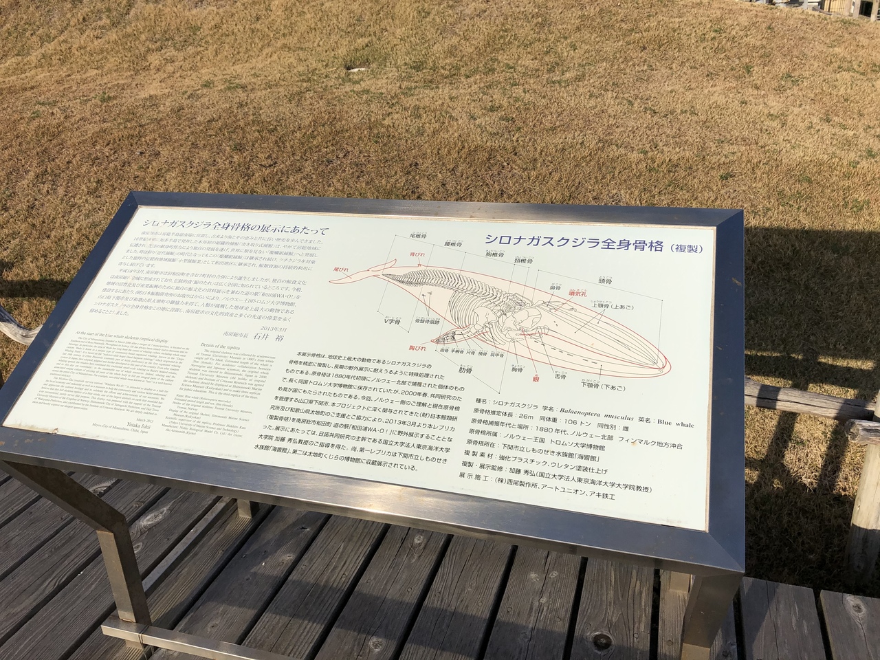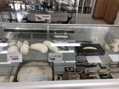 元旦の道の駅巡りで最後に寄ったのがこちらでした。隣接するくじら展示室にはこじんまりとくじら以外のものも展示されてました。中の展示室は市民センターの一室みたいな雰囲気、外にはシロナガスクジラの標本、捕鯨砲がありました。