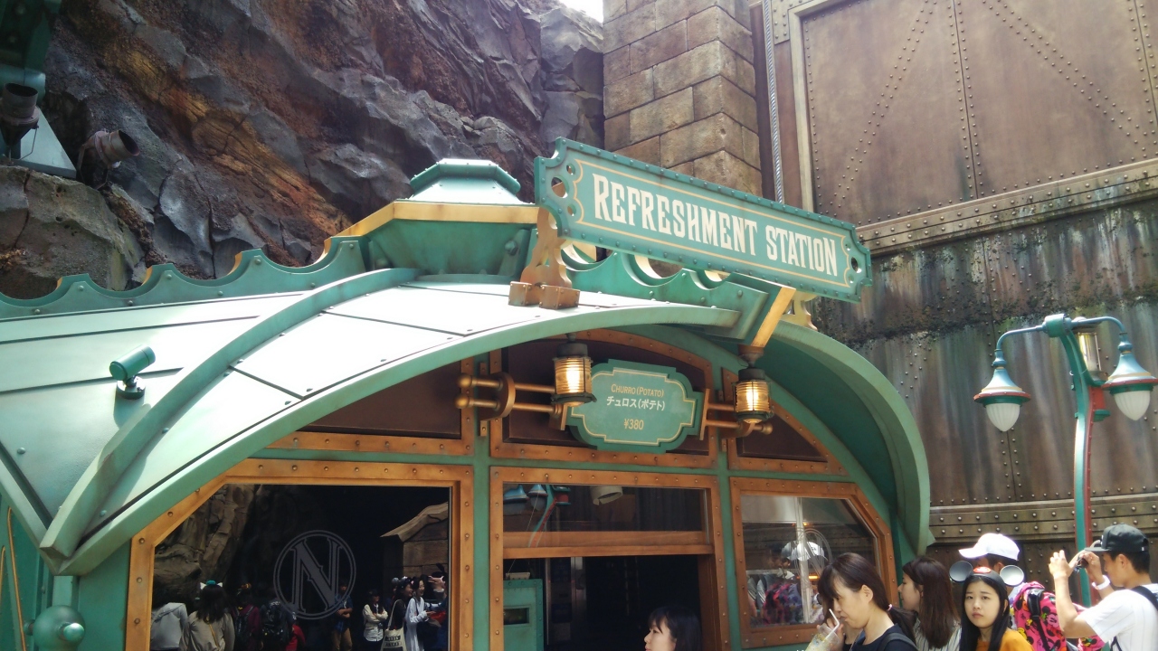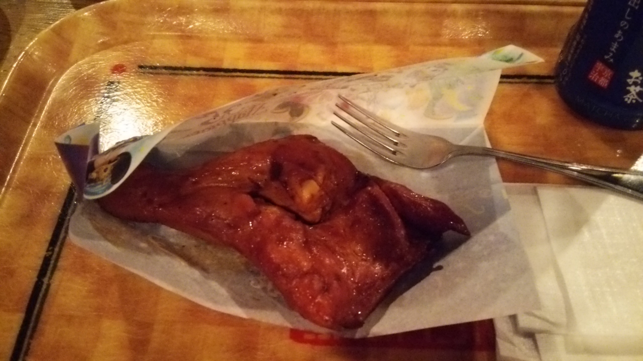ディズニーに行くと夜ご飯をちゃんと食べる時間が無くなるのでファストパス前にこちらで軽く食べておきました。近くのチキンのワゴンはかなり混んでいるけど並ばずに座ってこちらでは食べる事ができました。スパイシースモークチキンレッグ500円。いつも売ってるわけではないと思いますがチキン食べずらいので座って食べれるのは良かったです。