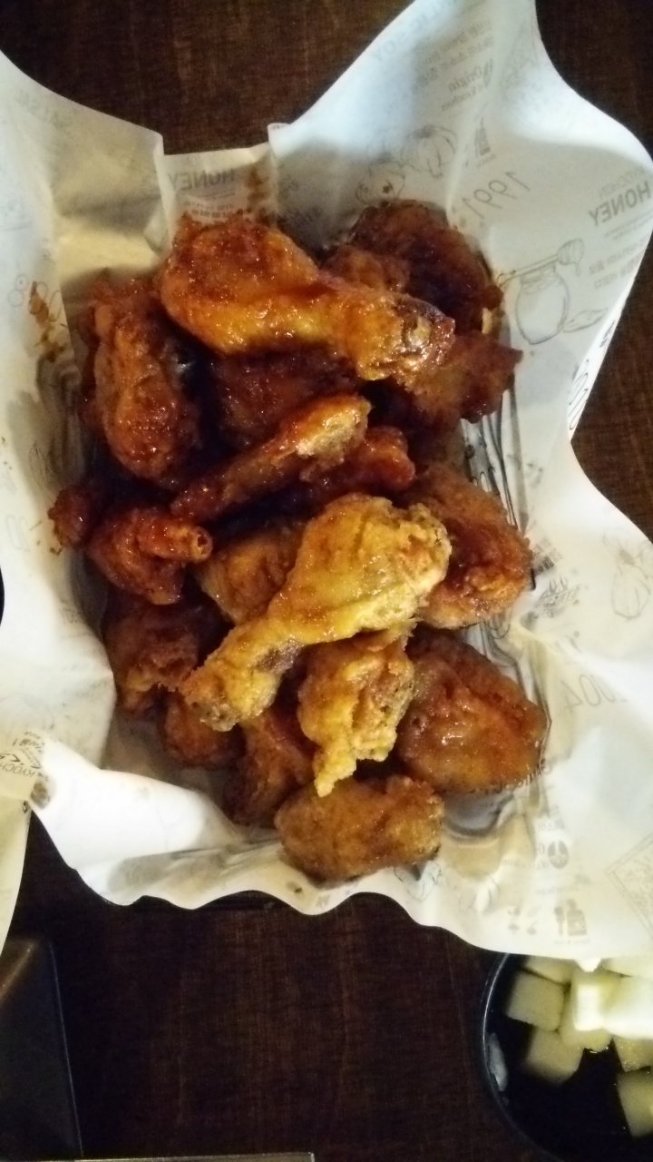 東大門地区に宿泊した翌日のランチで訪問しました。ドリンク、ポテト、チキンのハーフ&ハーフを注文。チキンは時間がかかるのでポテトを頼んで待ちました。チキンの量が多く注意が必要です。自分達は完食しましたが、食べきれない場合は残りを包んでもらっていました。チキンの味は濃いめですが、また行きたいです。