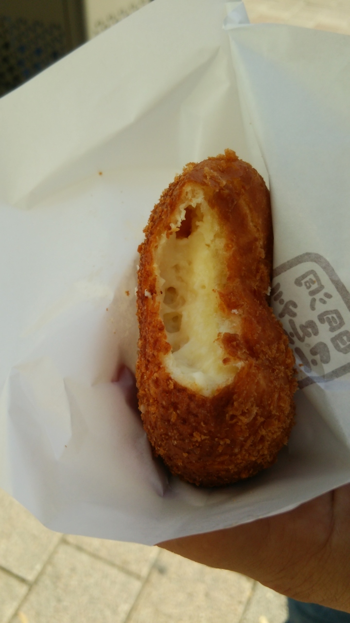たまたま通りかかった時に見つけてこれは食べてみたいと列に並びました。ひとつ380円で5分も並ばずに購入できました。普通のチュロスに比べてもちもちしていて短め、コンソメみたいな味がしました。近くに少し席があるので座って食べれました。また行ったら食べたいです。