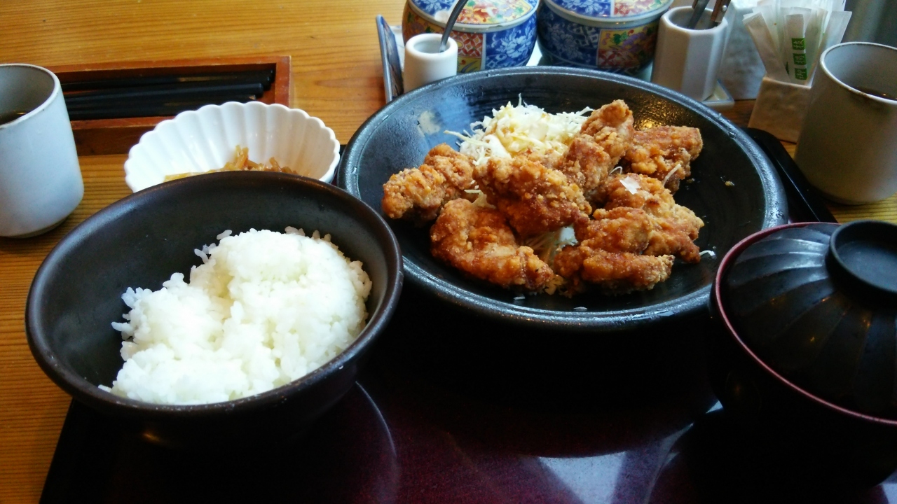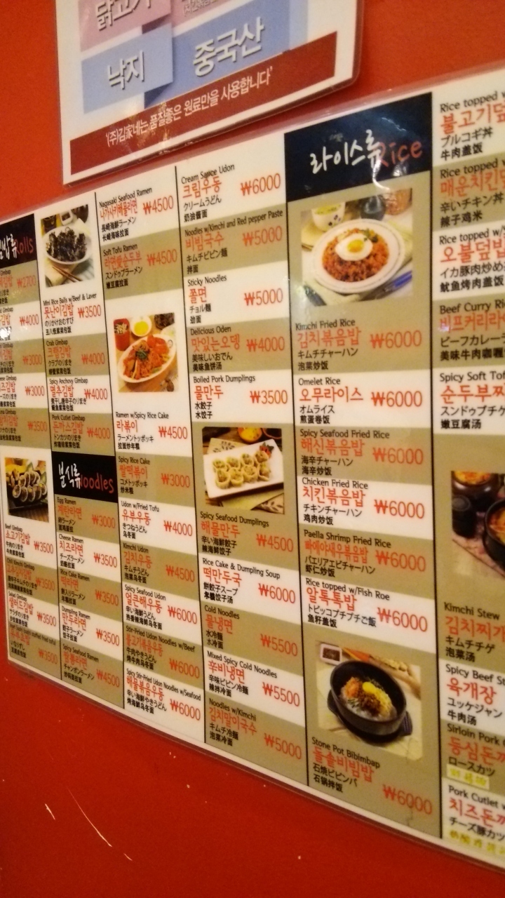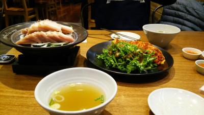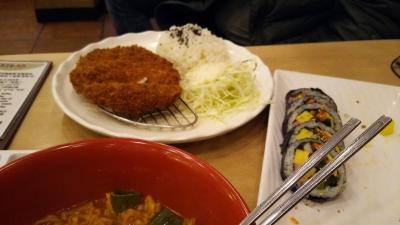 まだ12時前で既に階段の先まで行列ができてましたが20分位並んで店内へ。レジで注文と精算をしてから席に案内されます。唐揚げ定食とメンチカツ定食を注文。メンチはお店の外のランチメニューには無かったけど店内のメニューにはありました。唐揚げはソウルで食べた時の方が大きかったけど値段もこちらの方がリーズナブルなので満足でした。