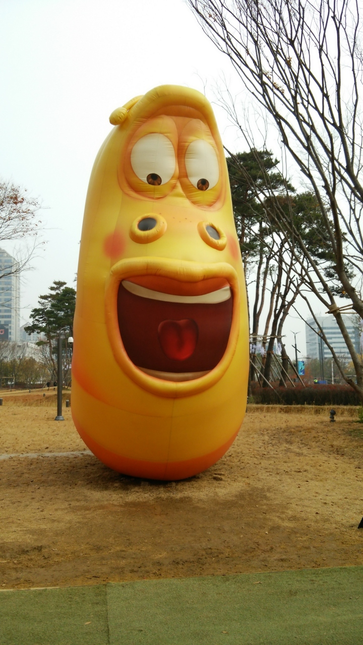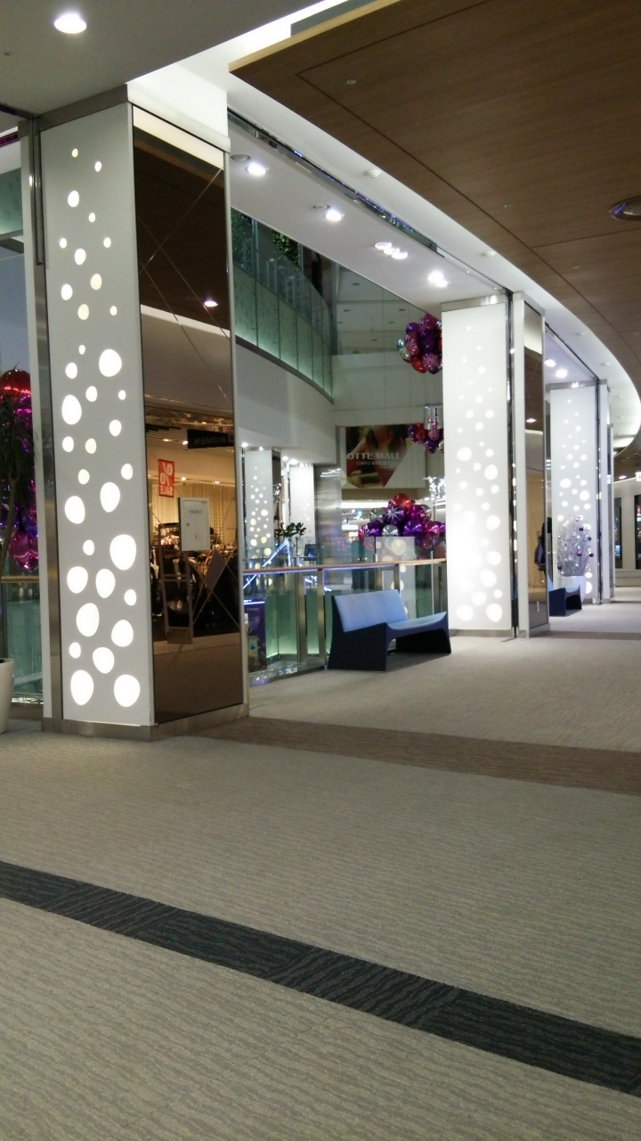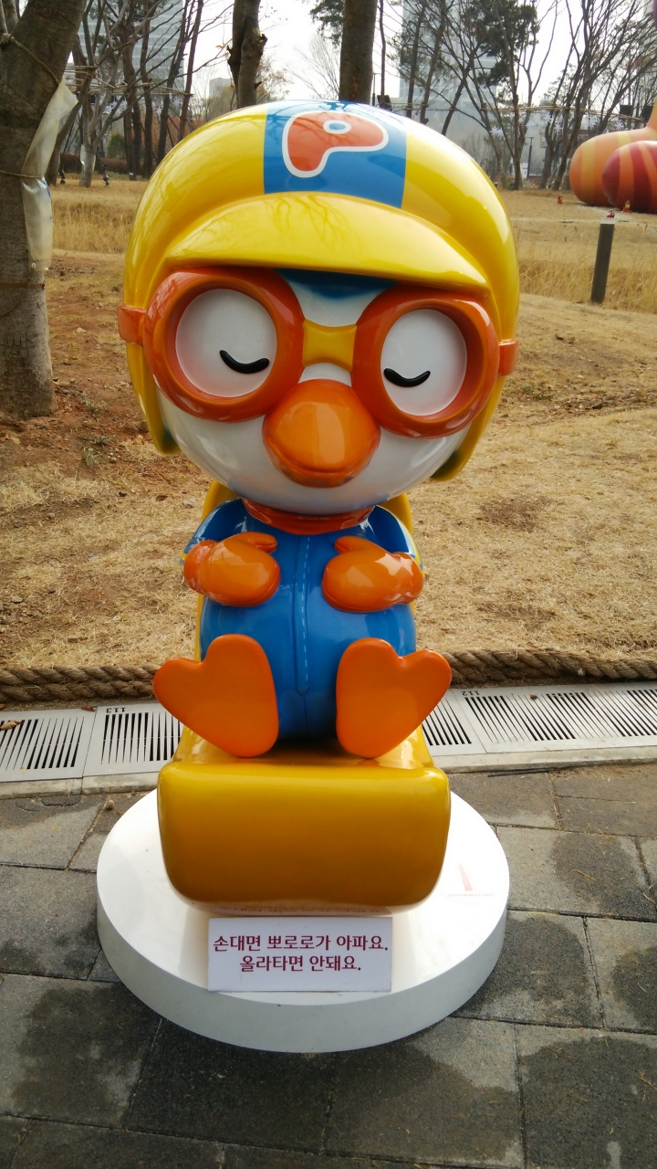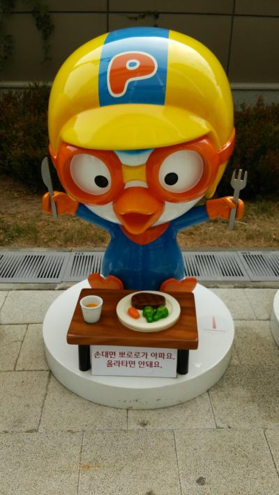 AVENUELと免税店の建物とショッピングモールの間の連絡通路を歩いていたら右側に何やらキャラクター達がたくさん置いてあったので観てきました。ポロロは地元の子供達にも大人気でした。日曜だったのでショッピングモールは混んでました。