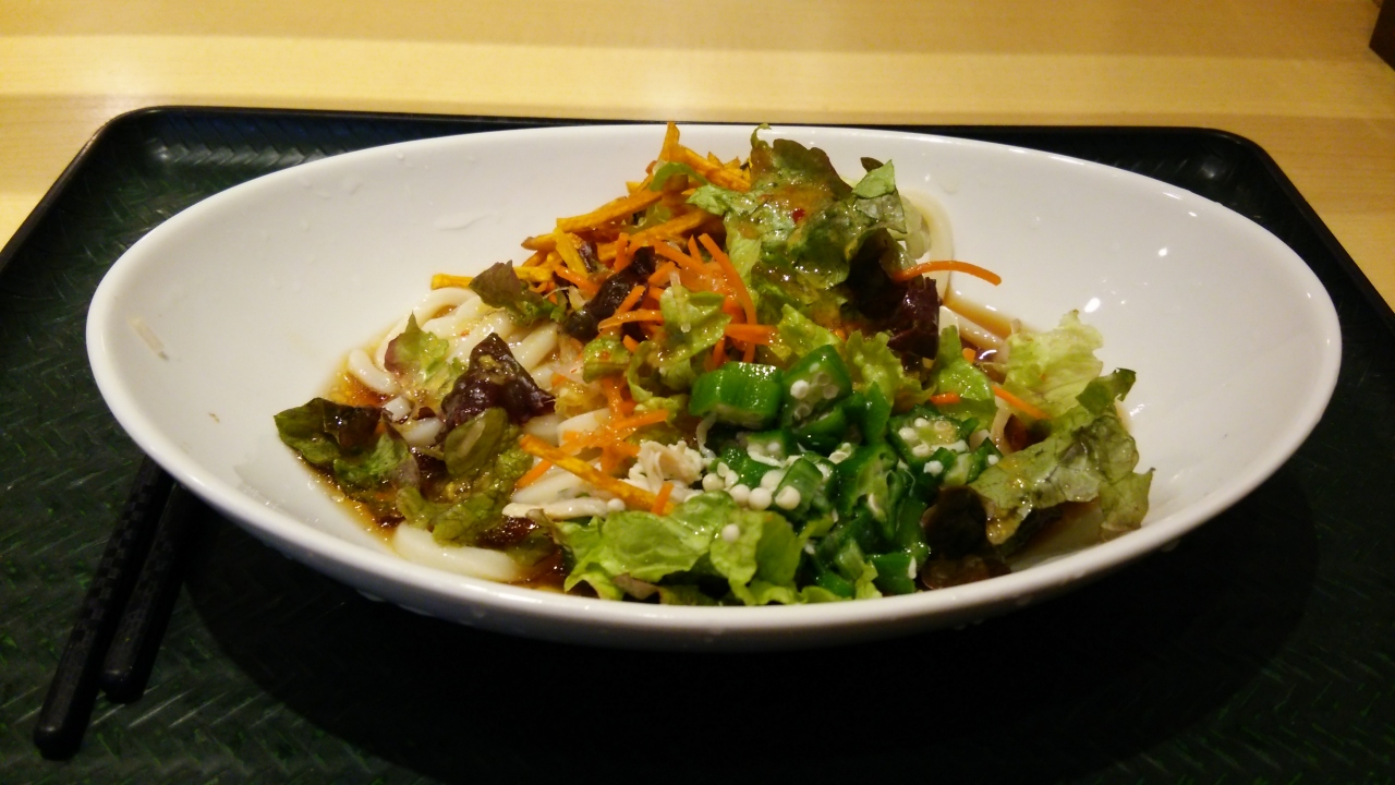横浜西口のドンキホーテの目の前にあるこちらのお店。お昼より少し早い時間に利用すると空いていてゆっくりできます。お水はセルフサービスなので自分で取りに行きます。今回は「こくうまサラダうどん(小)」を頂きました。美味しかったです。