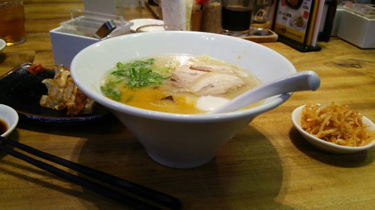 休日の昼間に伺いました。少し時間をずらし14時過ぎに並びましたが15分位で席を案内されました。今回は白丸元味と博多ひとくち餃子を注文、替玉は120円でした。並んでる間にLINEでこちらのお店を友達追加すると80円のトッピングが無料になりました。テーブルに置いてあるもやしと高菜は食べ放題です。ルイボスティーはくせがあるので苦手な人はドリンク頼んだ方がいいかもしれません。