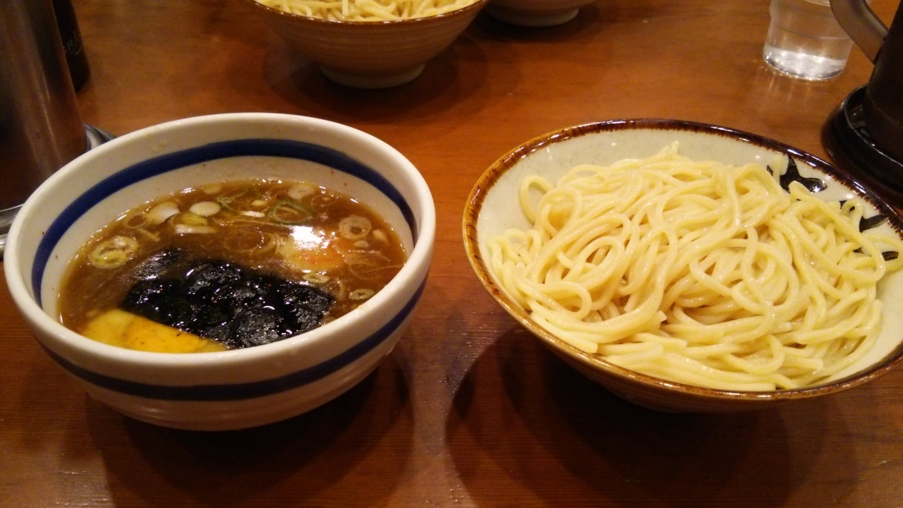 横浜駅西口、相鉄ムービルの裏の路地を歩いていた時に、お店を見つけ、入店しました。平日の午後で1階席はほぼ満席に近かったです。店の外の券売機で券を購入するシステムでした。店内にもずらっと頭上にメニューが貼ってあるが消費税の関係かほとんどが手書きで変更された紙が上から貼られていました。初めてなので普通のつけ麺を注文。味濃いめ、麺は多く、男性の好みに合いそうなお店と感じました。