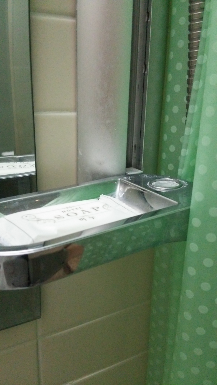 ツアーで利用しました。南大門の中にありますが、新世界デパートのすぐ近くで、明洞、ソウル駅にも徒歩で行けます。ホテル入口が階段がある事とエレベーターが1台しかないのでそこが不便でした。ビジネスホテルといった感じなので部屋は狭いです。バスルーム、シャワーは水道一体型(水圧は問題なし)、ウォシュレットはついてました。ただトイレットペーパーの位置が真後ろで…非常に使いにくかったです。