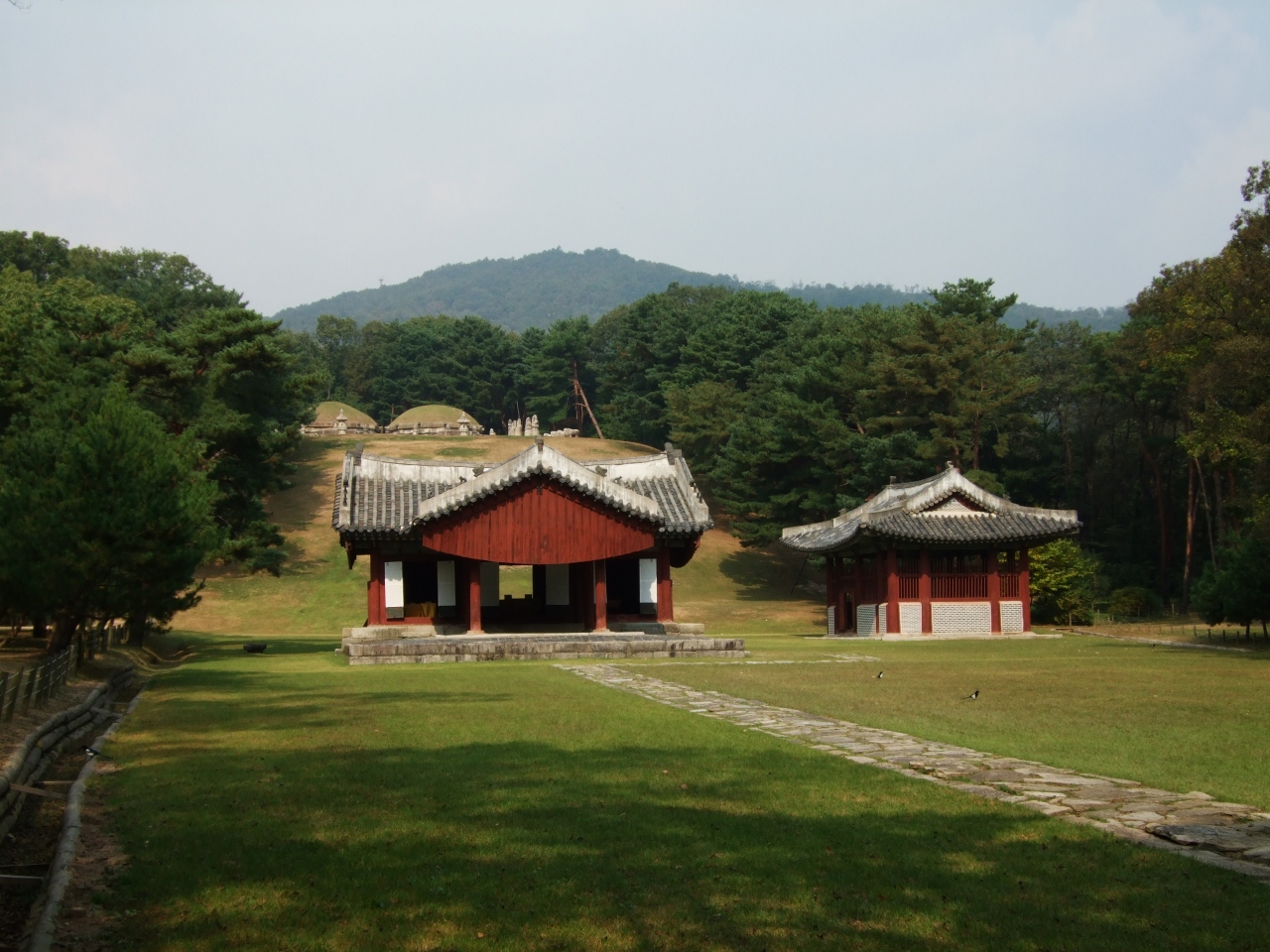 水原ツアーに参加した際、水原華城→華城行宮→献仁陵と回りました。平日の午前中でしたが、自分達のツアーしか訪れている人はいませんでした。朝鮮王朝第3代王「太宗」と奥さんのお墓だそうです。静かで緑豊かな場所でした。
