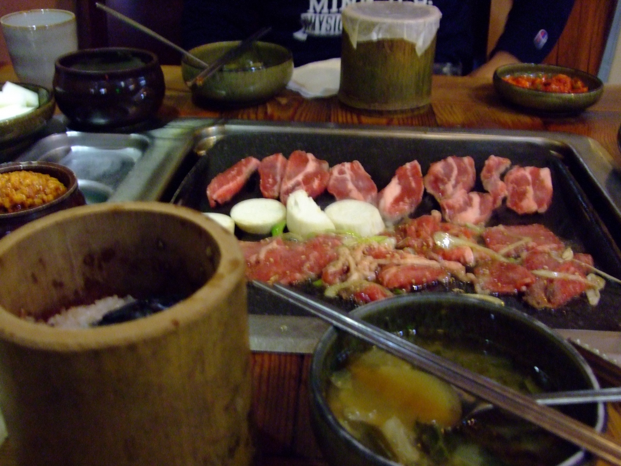 当時、近畿日本ツーリストさんのツアーで行った時にレストランクーポンがついてて利用しました。追加でギョーザ(2000ウォン)ラーメン(1000ウォン)を注文。スパムやハムなどの具材に韓国らしいスープの辛い鍋でした。